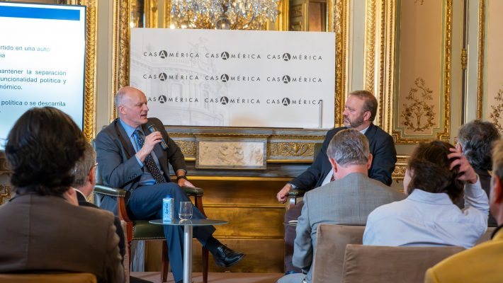 En primer lugar, gracias a Casa de América y a todo su equipo por la acogida y el apoyo organizativo. Nuestro reconocimiento a Moisés Morera por la presentación y contextualización del acto, y muy especialmente a Alejandro Werner, Director del Georgetown Americas Institute, por una intervención rigurosa, clara y generosa, que nos permitió situar a América Latina en el centro de los debates estratégicos internacionales, así como a Juan Luis Manfredi, ex Catedrático Príncipe de Asturias y miembro del Comité Ejecutivo del Club, por su moderación impecable. Gracias también al Embajador León De la Torre, Director General de Casa América, y a todas las personas que participaron activamente en la conversación y en el coloquio posterior.